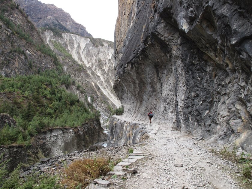 Kurze Begegnung beim Mittagessen. Jennie, Tim und Joker sind am Morgen wie immer vor uns gestartet und davon ausgegangen, daß wir in Chame bleiben. Sie sind gerade am aufbrechen vom Mittagessen, als wir in Bhratang ankommen.
